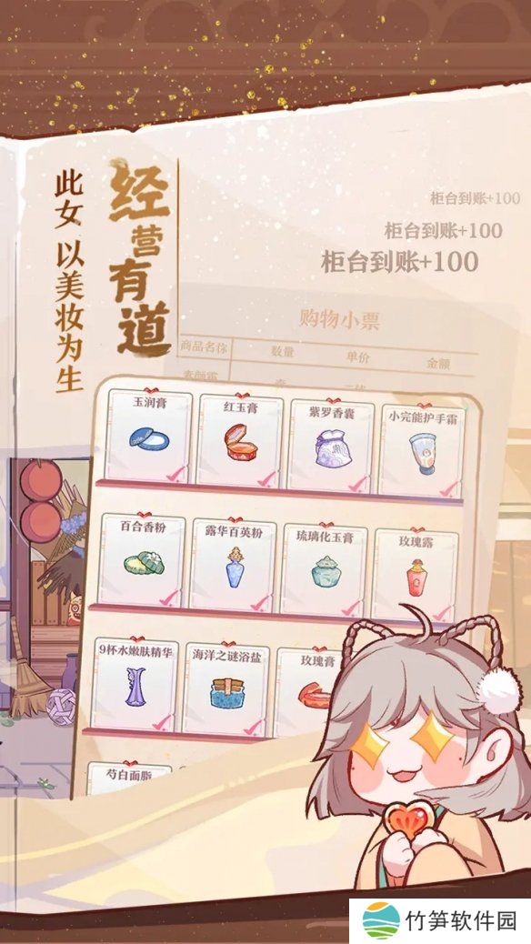 在胭脂铺中,需要负责采购并上架商品、更新家具款式、雇佣并升级店员等工作。