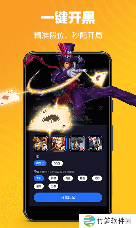 软件内置匹配功能,能够让你一键匹配到技术高超的游戏大神,让他们陪你一起开黑、一起聊天,一起上分,冲击最强王者。
