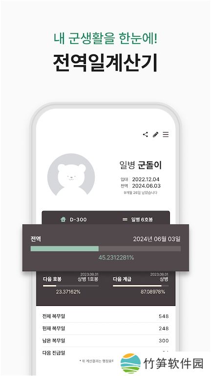 3、以上时间实时变化。用户可以统计和记录家人、朋友、偶像在韩国的服务时间。