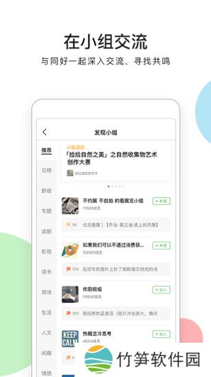 3、关注好友后,可以在“广播”里查看他们的动态,和他们互动;加入感兴趣的小组,随时和志同道合的人交流爱好。