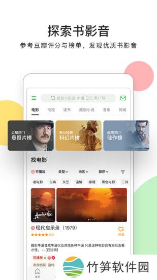 2、同时,你还可以自由地查询图书、电影、电视、音乐、同城活动的信息,参考他人的评分和评论,发现适合自己的精神补给。
