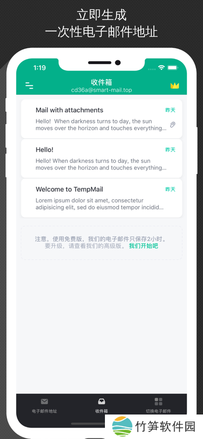 3、提供了临时电子邮件地址的创建且使用起来完全免费。